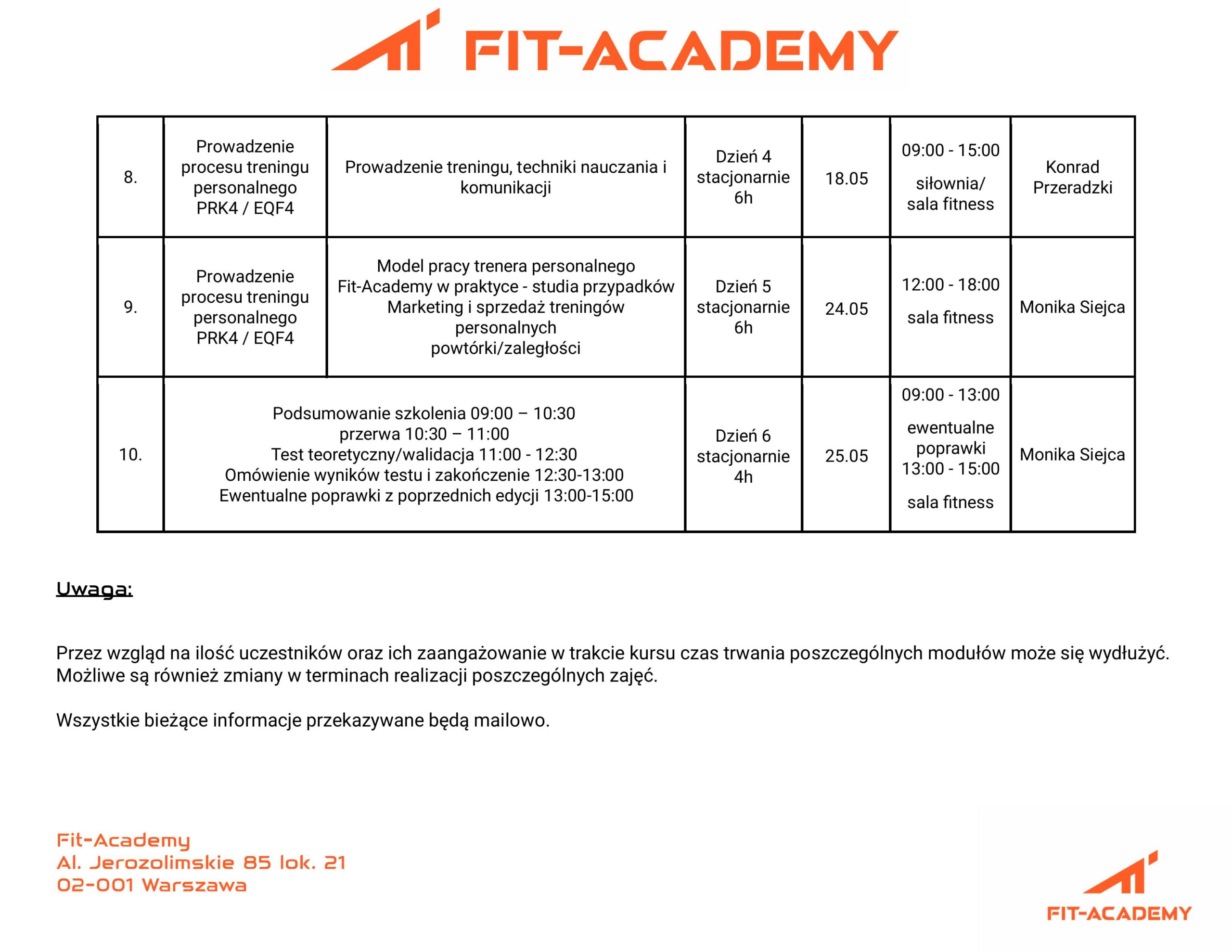 Czas trwania: START 04.05 Kurs trwa do 15.05