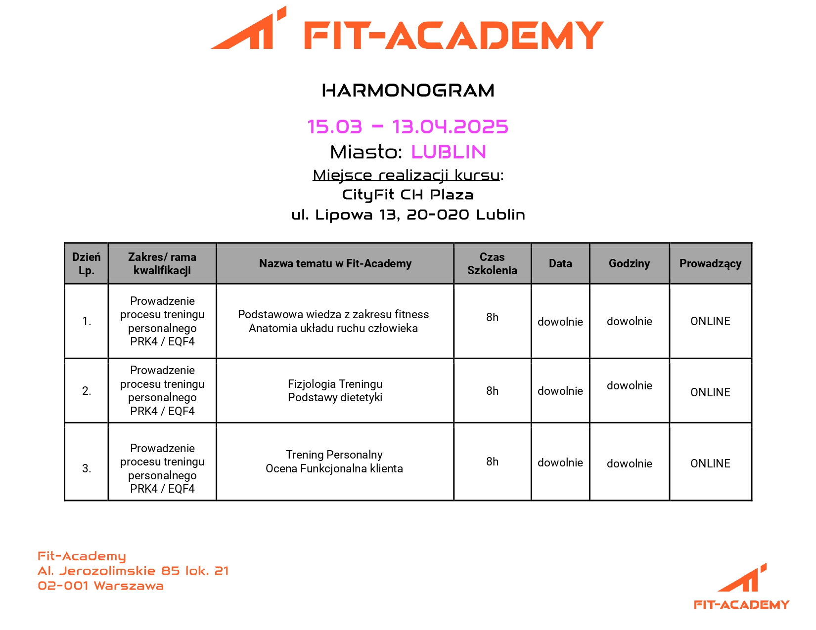CENA KURSU TRENER PERSONALNY LUBLIN: